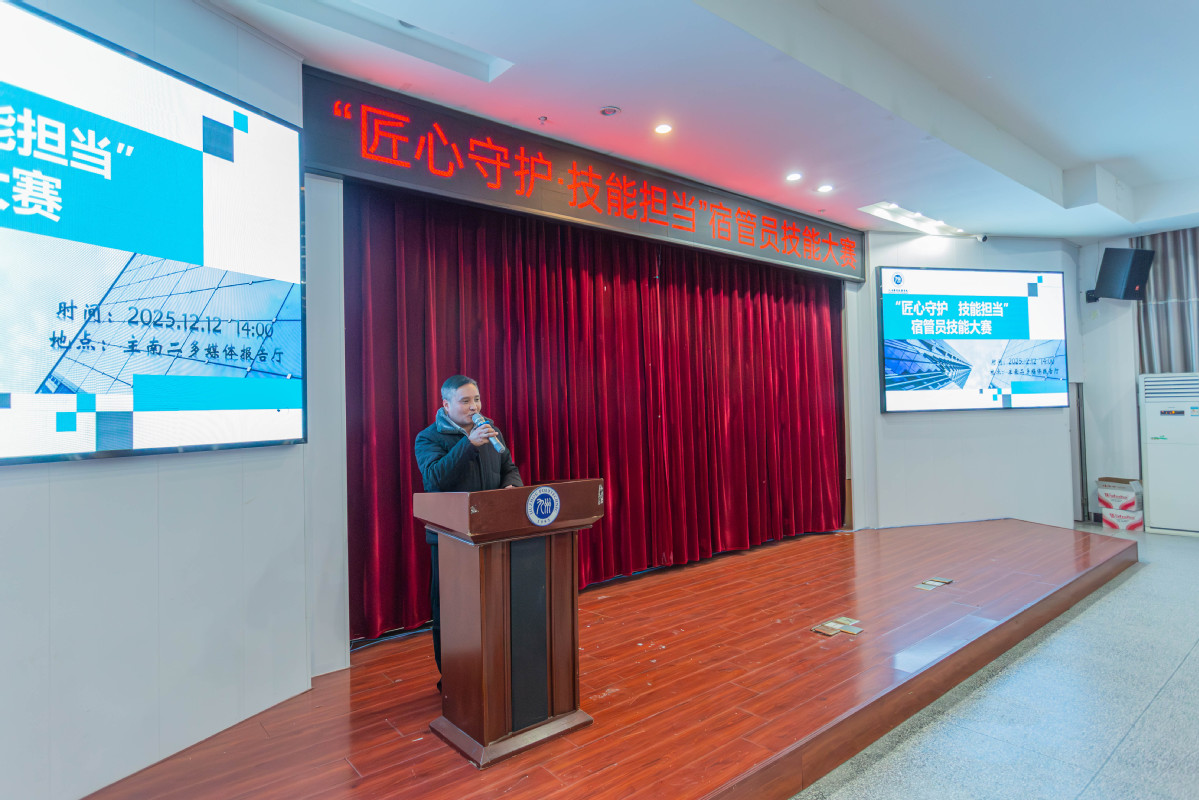 为进一步提升“一站式”学生社区服务育人水平,切实提高我校学生宿舍管理员的专业技能与服务水平,12月12日下午,由学生工作处、后勤保卫处及江苏顺安物业服务有限公司联合举办的我校首届“匠心守护·技能担当”宿管员技能大赛在主南二落下帷幕。