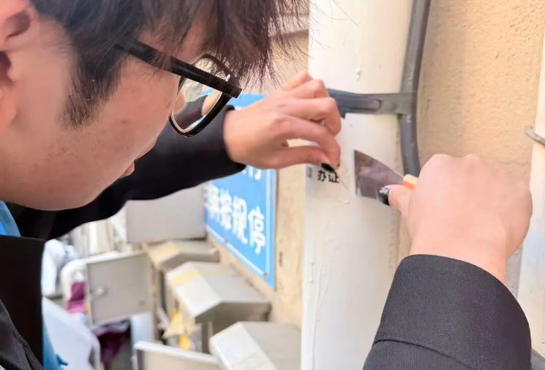 在无名山社区,志愿者们身着统一标识,手持铲子、抹布、垃圾袋等工具,分工协作、默契配合。大家仔细铲除墙面、楼道内的违规小广告,清理卫生死角的杂物垃圾,不放过一处盲区、不留下一处污渍。经过集中整治,社区公共区域环境焕然一新,得到了社区居民的一致认可。