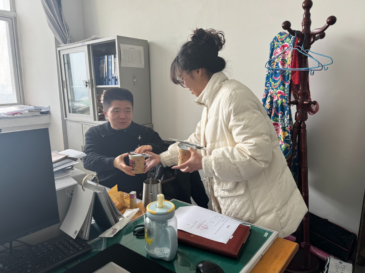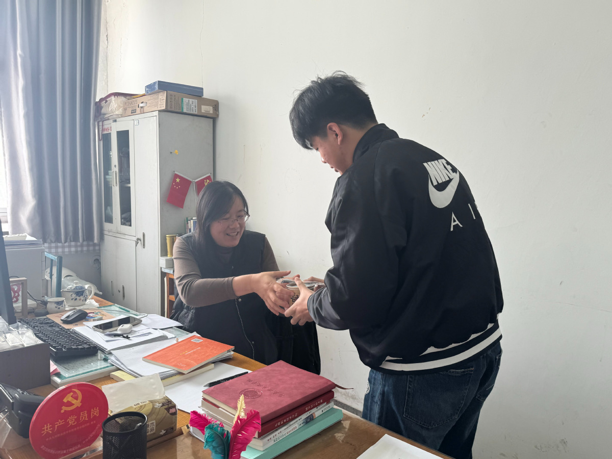 活动前期筹备细致周全,学院团总支学生会提前完成汤圆煮制、分装与保温工作,贴心准备清真、无糖等适配品类,兼顾教师不同饮食需求;志愿者团队完成分工部署、礼仪彩排与派送路线规划,为活动顺利开展筑牢基础。活动现场,各派送小组有序前往各教师办公室,将热气腾腾的汤圆与手写祝福贺卡送到老师手中,轻声致以节日问候,全程志愿者严守安静有序的要求,文明问候、轻声交流,切实做到表达敬意的同时不影响正常教学办公,展现出学院学子良好的精神风貌。