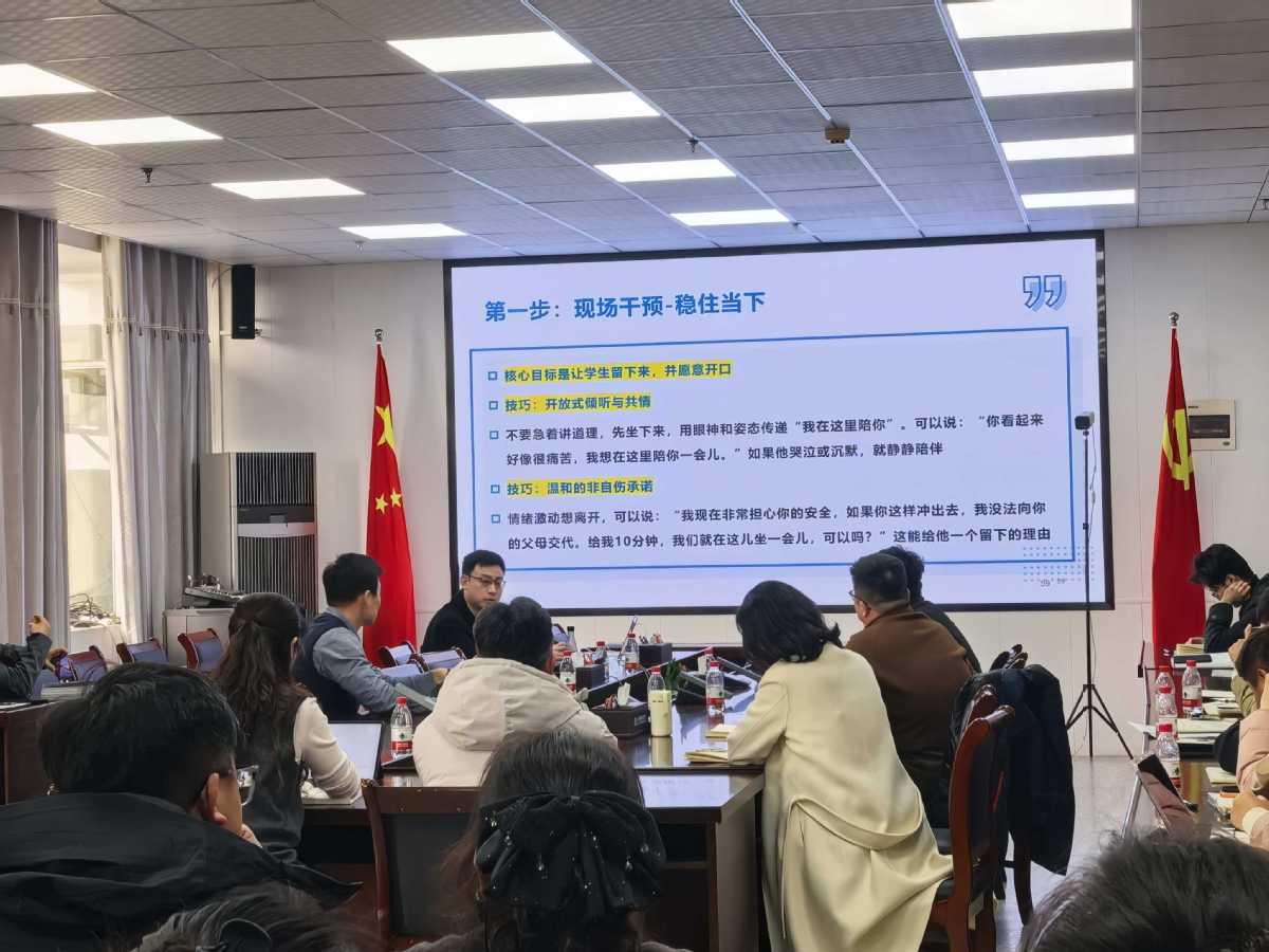 本次培训是我校心理健康教育专项能力提升计划的首场活动。根据计划安排,后续还将围绕谈心谈话技能提升、危机干预演练等模块,持续开展形式多样的专题培训,着力打造一支略懂医理、精技术、有情怀的育人队伍,全面提升我校心理育人能力,切实守护学生健康成长。
